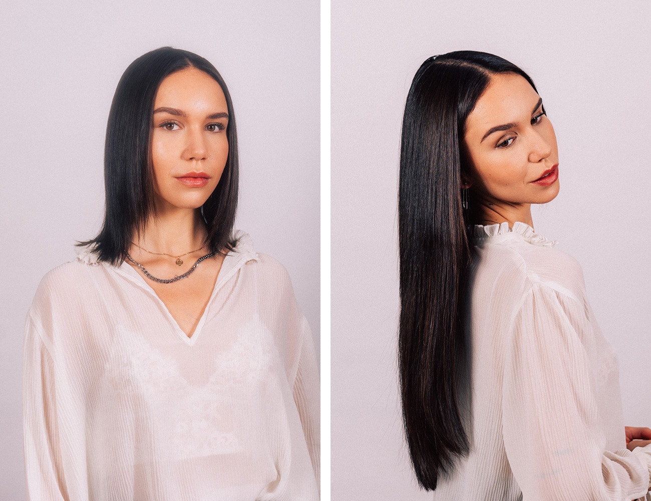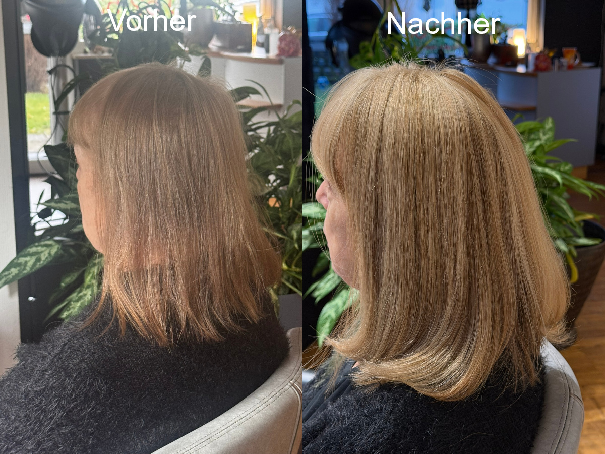 Die Anbringung ist dabei besonders haarschonend. Dank der flachen, feinen Bondings sind die Verbindungsstellen kaum spürbar, angenehm zu tragen und vollständig unsichtbar. Das Ergebnis ist ein natürliches Haargefühl und ein Look, der überzeugt.
